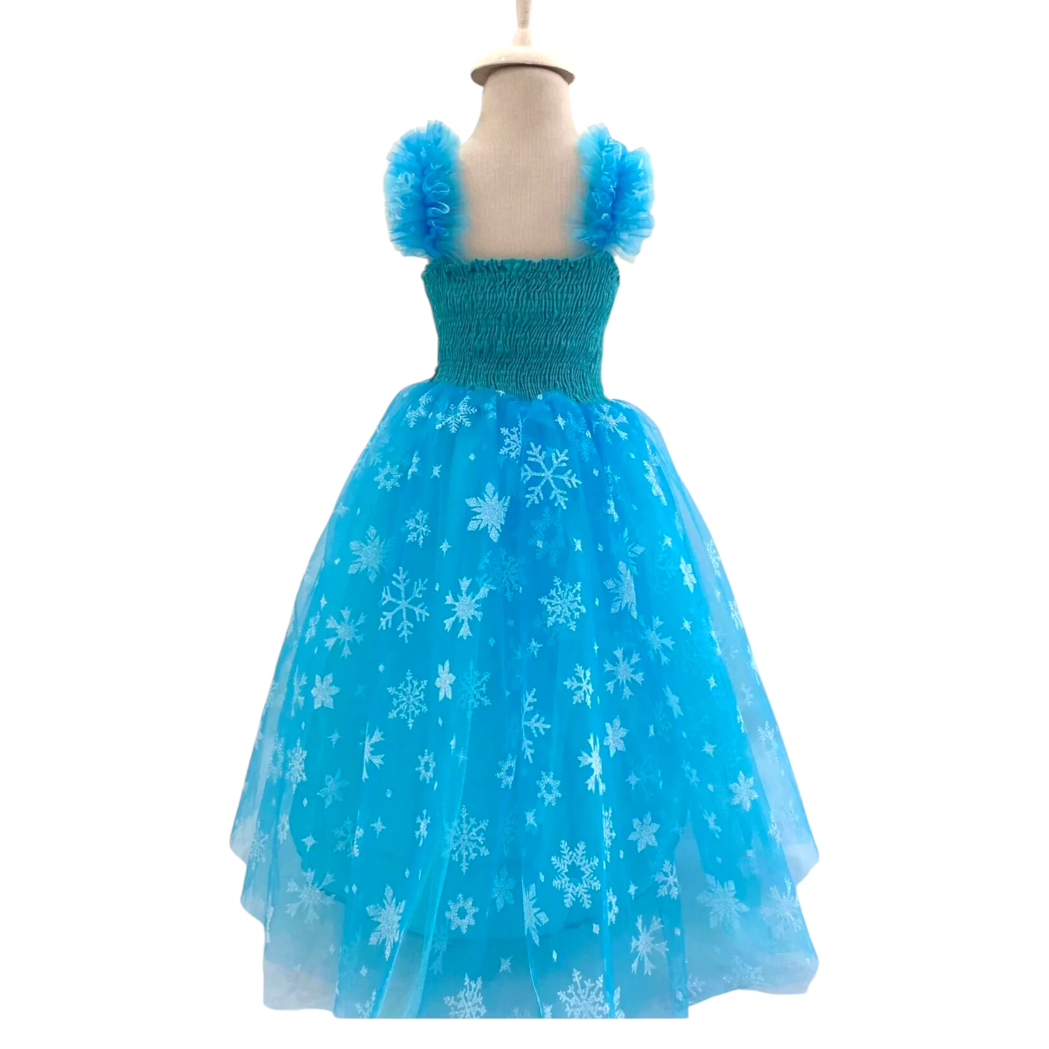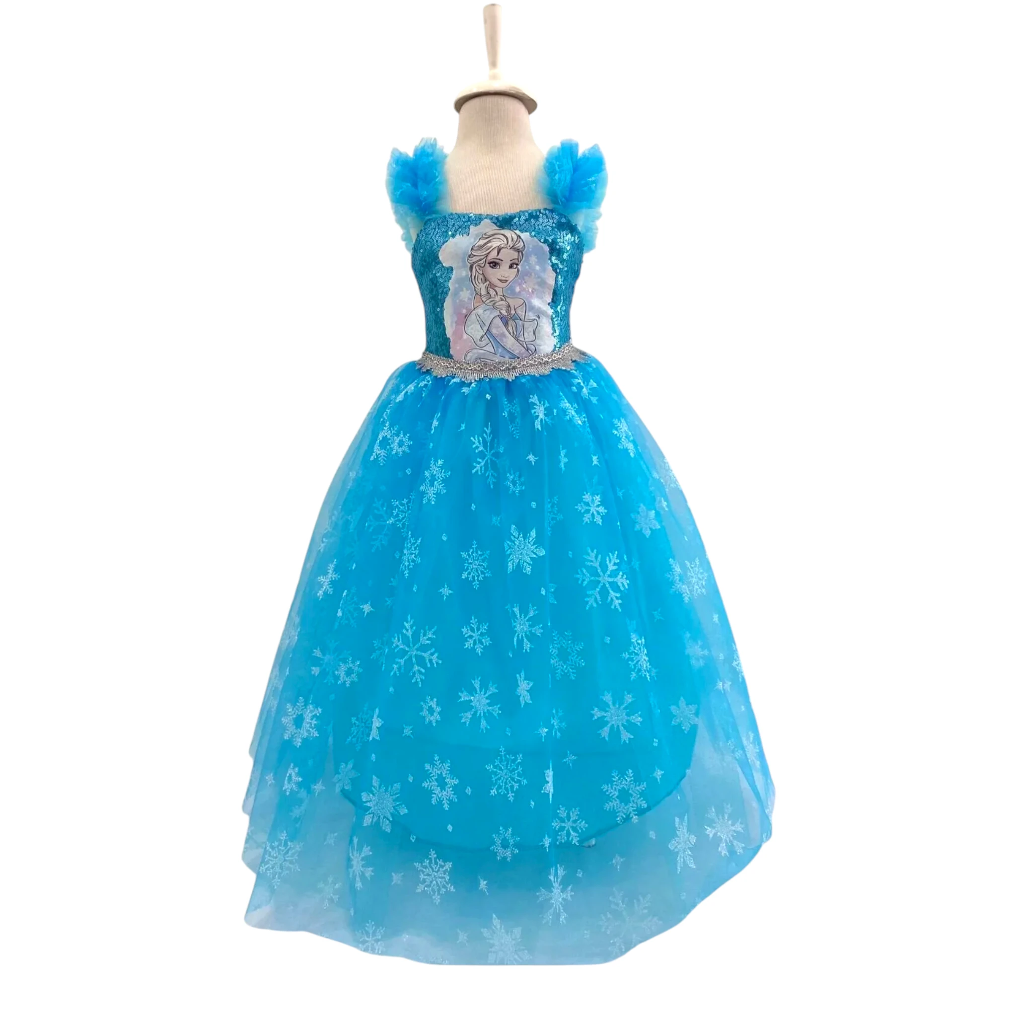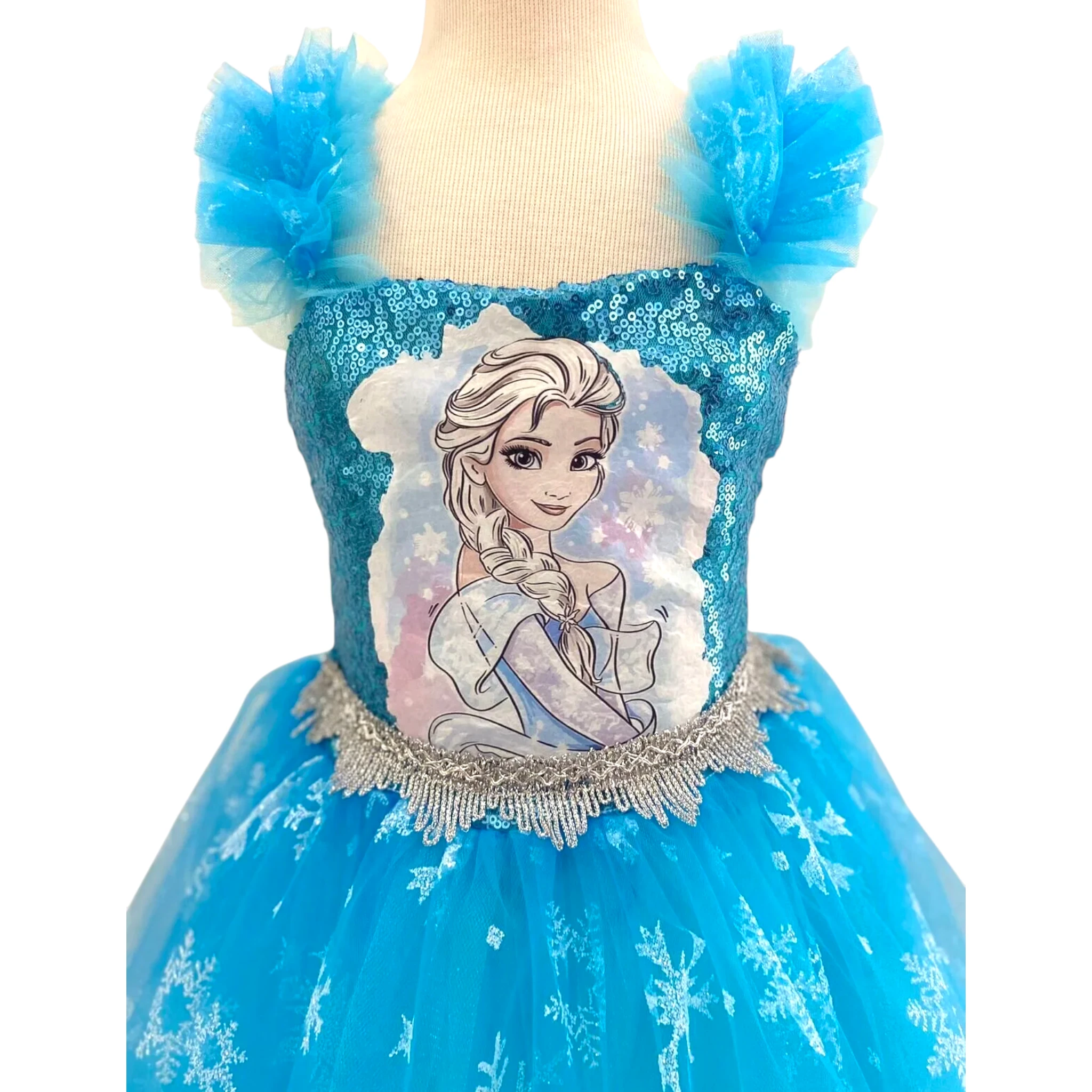 üzerindeki Elsa karakter baskısı ve kar tanesi desenli tül eteği ile dikkat çeker.